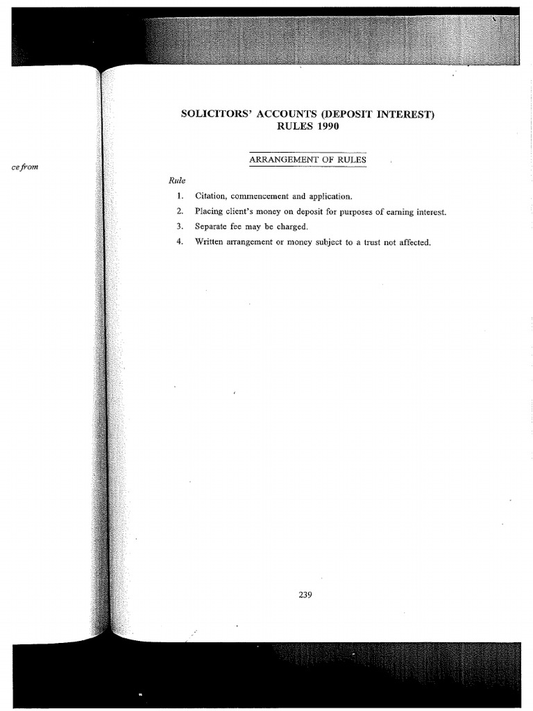 First, he must distinguish the principal's money from his own. Credits, debits, etc., on reference Solicitors' accounts (deposit interest) rules 1990 (sadir) herein, collectively referred to as the rules, unless stipulated otherwise. Made under sections 32, 33a, 34, 37 of the solicitors act 1974, section 9 of the administration of justice act 1985, and section 83(5)(h) of, and paragraph 20 of schedule 11 to, the legal services act 2007. These rules may be cited as the legal profession (solicitors' accounts) rules.